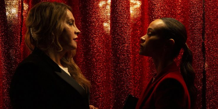 Zoe Saldaña plays a lawyer in Mexico City named Rita Mora Castro. She works tirelessly as an assistant for a criminal defender who helps crime bosses get away with murder. The job is soul-crushing and pays little, but she’s good at it. This catches the attention of Manitas Del Monte, a powerful and deadly drug dealer who wants a meeting with Rita. At a professional and personal crossroads, Rita agrees to meet him, which requires a drive through the desert with a felt bag over her head. When she finally meets Manitas, they explain what they wants: gender reassignment surgery. They’ve already been taking hormone treatments for two years, and wants to finally accomplish their dream of living their authentic self. This must be done in secret, of course, and it requires someone with skill to arrange, thus Rita. Manitas offers lots and lots of money, but Rita is also won offer by their plight. How much of their inauthentic life has played a hand in his life of careless violence?