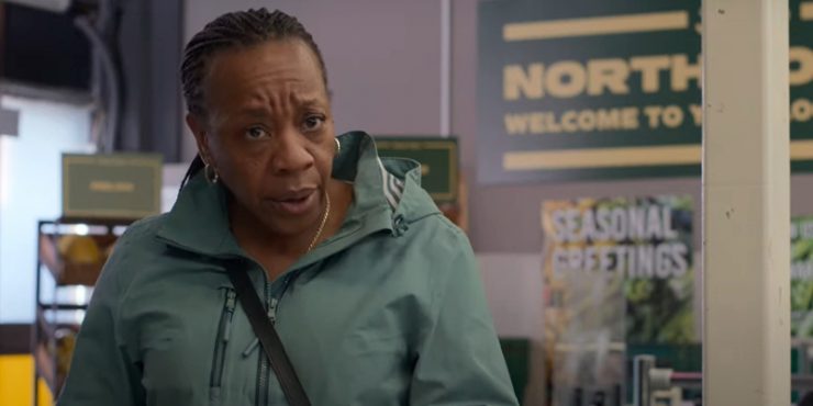 Pansy’s sister, Chantelle (Michele Austin, in an incredible performance), is a single mother. Her two daughters (Ani Nelson and Sophia Brown) are independent and career-oriented, but they still make time for their mother, having candid but loving conversations. Leigh’s cross-cutting of the two families, connected by blood but seemingly nothing else, only further highlights the level of Pansy’s despair, and the degree to which she takes it out on others. She rarely leaves her home, citing her poor health and the dangers of the public. When she does go out, she courts harassment from others. Should a shop employee venture to offer help, they’ll be met with a vitriol so out of proportion that shock is the only response. By the time Pansy makes it back home she falls asleep from the exhaustion.