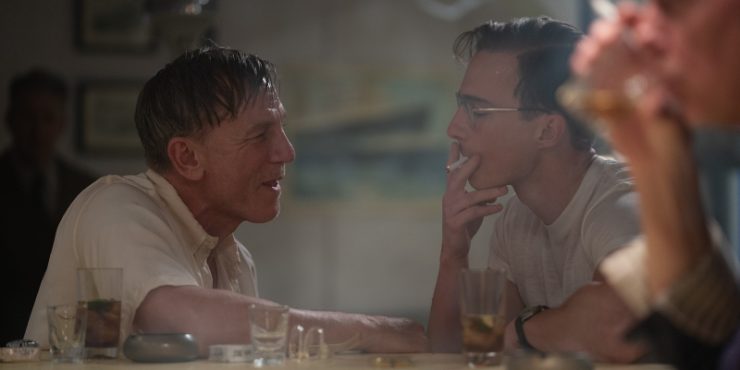 If you’ve ever seen Daniel Craig in anything other than a James Bond film, you already knew that he’s an actor desperate to defy expectations and test the limits of his screen persona. This was true even before he was Bond. Consider his version of Perry Smith in the other Truman Capote movie of the mid-2000s, Infamous. Given the opportunity, Craig can play rather outsized. His American accent seems to always come out as parody. Some of the riskier choices he’s made in his career lack subtlety. This is all partly true in his Queer performance as well, which leans heavily on twitchy mannerisms, but Craig does have moments of great depth. Sure, he commits to the physicality of the sex scenes, but so too does he recreate the anguish and isolation.