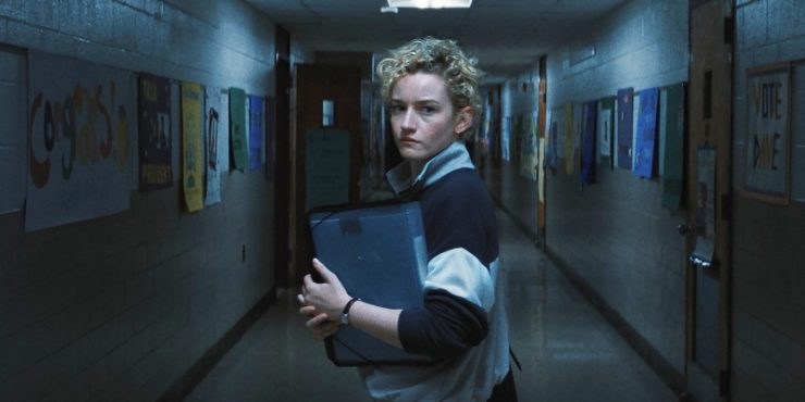 In a breathtaking sequence, Weapons opens with an omniscient child’s narration explaining the happenings of Maybrook, Pennsylvania. On a random weeknight, at 2:17 AM, seventeen children got out of bed and ran away into the darkness. Their whereabouts were unknown but home security footage showed how they all ran in the same, unnatural way: panicked, with their arms unmoving, pointing downward. All seventeen children were in the same third-grade class, taught by newcomer Justine Gandy (Julia Garner). When she arrives in class the next morning, only one child remains: Alex Lilly (Cary Christopher), a shy, sensitive boy who has little answers for all the questions pointed at him regarding the disappearance of his classmates.